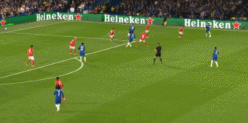 到了下半场,切尔西继续压着打,但没有扩大领先优势,下半场补时第6分钟,若昂-佩德罗因抬脚过高而两黄变一红被罚出场。全场战罢,切尔西1-0小胜本菲卡,取得本赛季欧冠首胜。