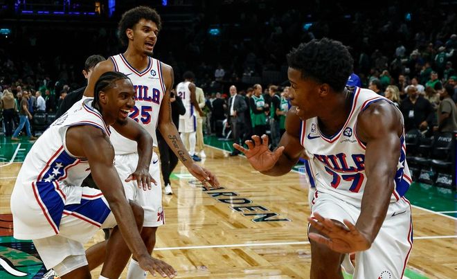 而埃奇库姆的搭档马克西更是打出了成吨的输出,这辆“超跑”甚至在三分线外也有9中7的效率,贡献40分2篮板6助攻2抢断1盖帽。埃奇库姆和马克西这对年轻的后场双枪,联袂得到了全队六成以上的得分,费城从以前以内线、锋线为主的风格,慢慢往以外线作为建队核心在过渡。尽管费城这几个赛季饱受伤病困扰,一直不太顺,但年轻人们的青春无限,给整支球队注入了活力。