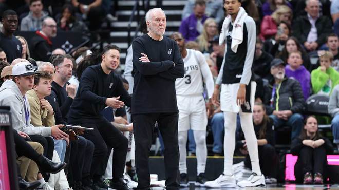 圣安东尼奥马刺队在弗罗斯特银行中心的椽子上升起了一面旗帜,以纪念格雷格·波波维奇。这位传奇主教练带领球队五次夺得NBA总冠军,并成为联盟历史上获胜次数最多的教练。这一刻象征着波波维奇、他的球员以及这座城市之间持久的纽带,这座城市在近三十年的时间里一直拥护着他严苛而又真诚的领导。