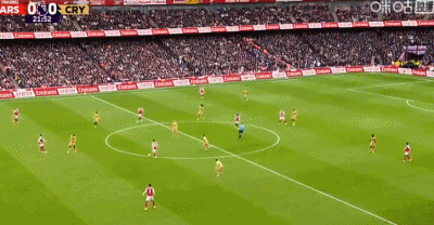 第39分钟,埃泽点球点处二踢脚凌空破旧主,阿森纳1-0领先水晶宫!