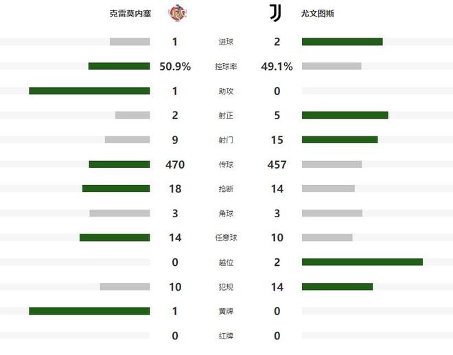 重新回到赛场之后,尤文在第58分钟由弗拉霍维奇和科斯蒂奇连续完成攻门,但都被克雷莫内塞的后防化解,不过第68分钟狂攻不止的斑马军团,还是扩大了领先的优势,队友下底传中被破坏后,坎比亚索禁区内补射建功,将比分改写为了2-0。